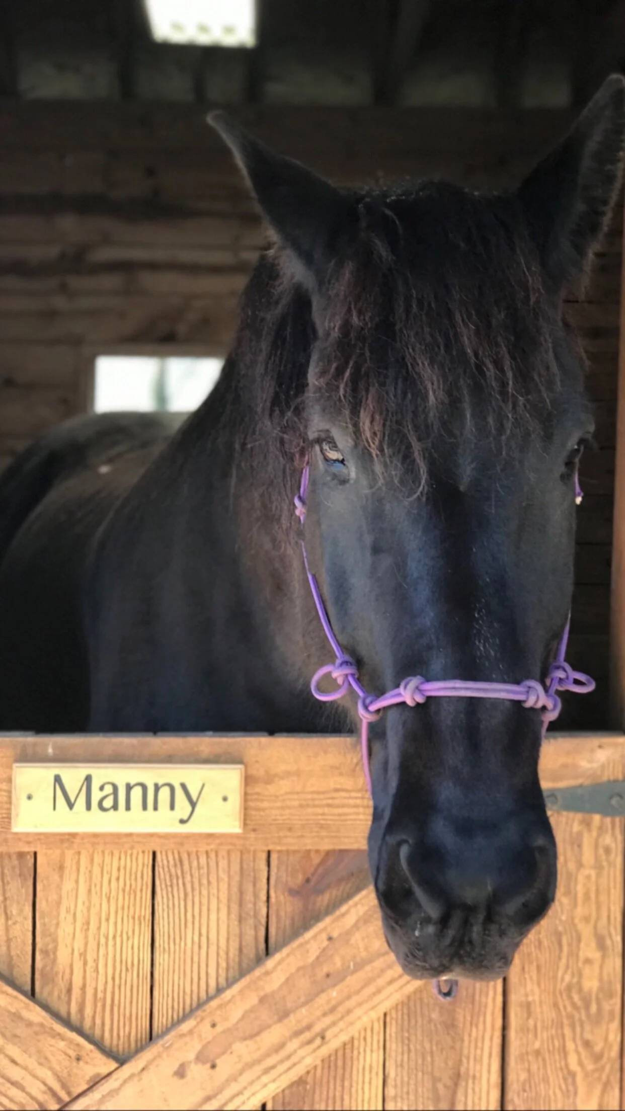 Manny is a Percheron gelding that came to us through a draft horse rescue. He had been abandoned and came close to being purchased for the meat market. Although his massive size can be intimidating at first, his kindness has helped many overcome their fears. He has a true love of humans and a magical gift of unconditional acceptance to those in need.