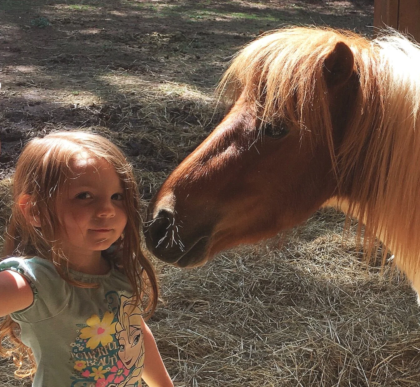 Pinky came to us from the Georgia Equine Rescue League with three other mini horses. They had been rescued from a neglect situation and the lady who adopted them became ill and could not longer care for them. She is the alpha mare of our mini-herd and Mason’s mother. She loves kisses and hugs and human companionship. One of her favorite things to do is kick up her heels, gallop around the pasture, and get her herd fired up just for the fun of it!